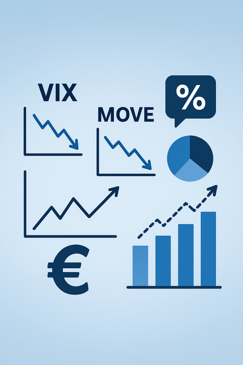 El MOVE Index es el equivalente del VIX, pero aplicado al mercado de bonos del Tesoro de EE. UU. Mide la volatilidad implícita en los rendimientos de la deuda soberana. Al estar también en niveles bajos, sugiere que los inversores confían en la estabilidad de los mercados de renta fija, que son el pilar del sistema financiero. Si el mercado de bonos transmite tranquilidad, es difícil que el riesgo de contagio hacia otros activos sea elevado.